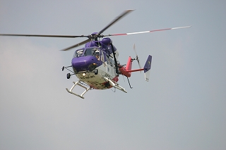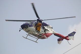 ヘリコプターに救助・収容・カッコよく飛び去りました。
