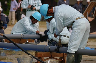 市より要請を受け、漏水修理と仮設水道を設置します。